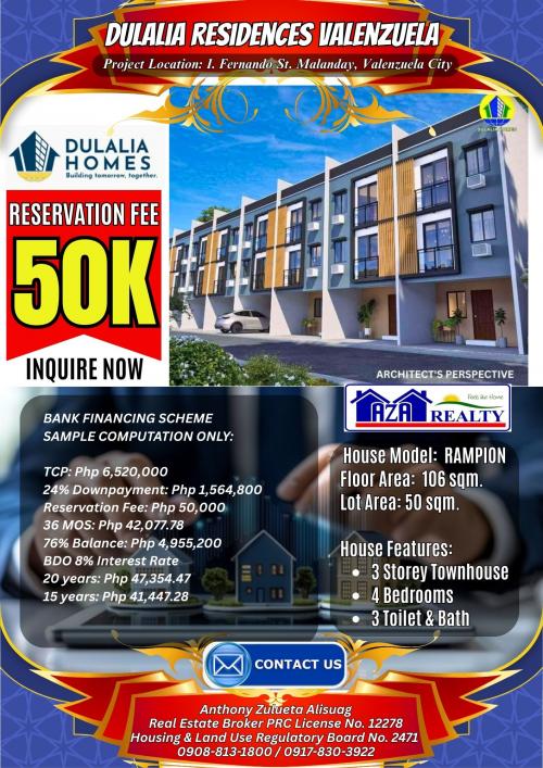 Php 50K Reservation Fee Rampion Model 4BR House And Lot For Sale in Dulalia Residences Valenzuela