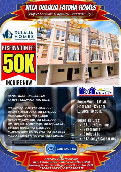 Php 50K Reservation Fee Fatima 3 Storey Townhouse House And Lot For Sale Villa Dulalia Fatima Homes Valenzuela