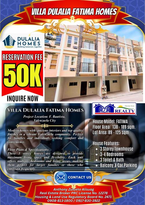Php 50K Reservation Fee Fatima 3 Storey Townhouse House And Lot For Sale Villa Dulalia Fatima Homes