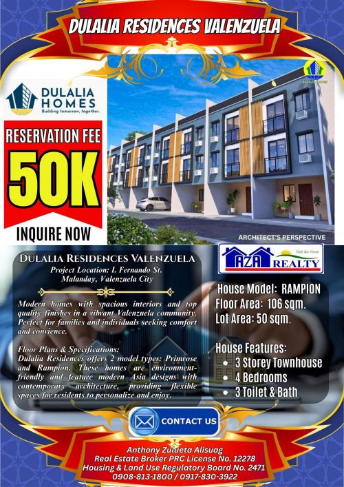 Php 50K Reservation Fee Rampion Model 4BR House And Lot For Sale in Dulalia Residences Valenzuela