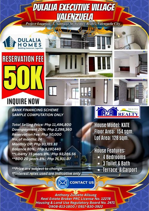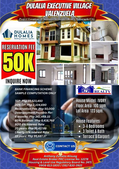 Php 50K Reservation Fee 4BR Ivory Model In Dulalia Executive Village Valenzuela